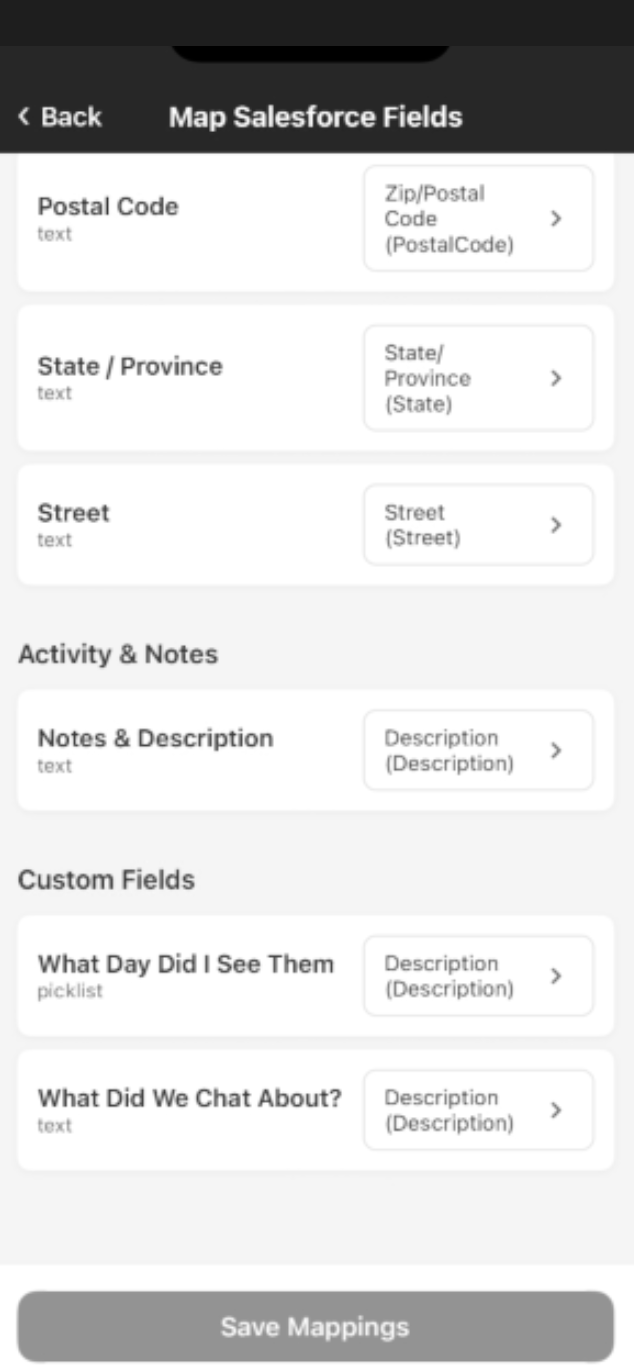 Map Salesforce Fields
